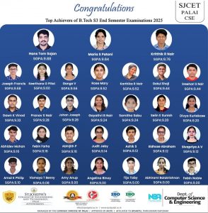 Striking the delicate balance between theory and practice, the Computer Science and Engineering Department of St. Joseph’s College of Engineering and Technology Palai provides a well-rounded education through innovative methods to meet the needs of our students. Computer Science and Engineering Department has a unique blend of faculty and facilities that offers students a rare opportunity to do research and learn Computer Science in new collaborative ways.