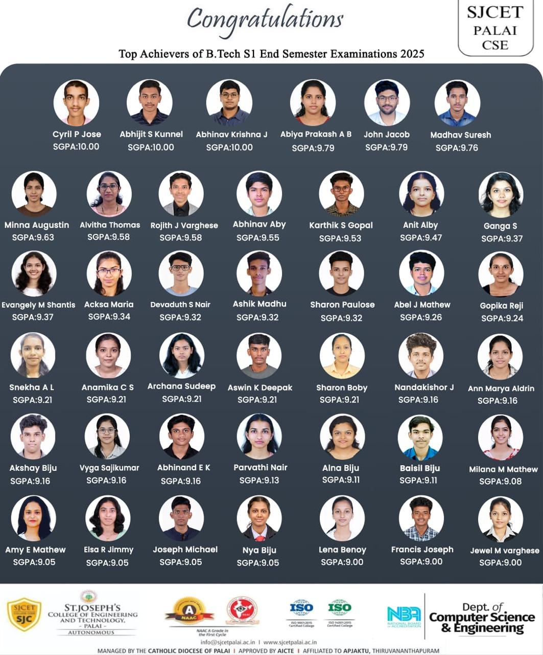 The Department of Computer Science and Engineering was established in the year 2002 and since its inception, the department has progressed with a vision and a strong commitment in developing competent Engineers with uncompromising standards of excellence in training, both through class room sessions and hands on sessions. The Department is equipped with competent and dedicated faculty members who are expertise in the current technologies. The department strives for uplifting the skill of the students to bring out innovative ideas from them with professionalism and ethical values. The department offers BTech (accredited by NBA), MTech and PhD programmes. The department is a recognized research centre of APJ Abdul Kalam Technological University, Thiruvananthapuram. The department has been maintaining an active interaction with the professional bodies like Computer Society of India and IEEE CS.