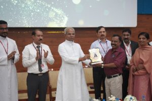Dr. Pious Thomas, Head of the MBA Department, receiving memento from MCA department for providing valuable insights into the importance of interdisciplinary learning and the role of management skills in technical fields.