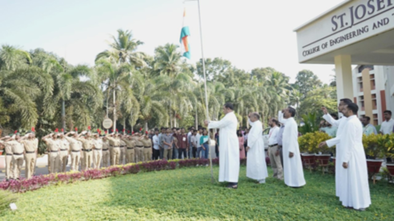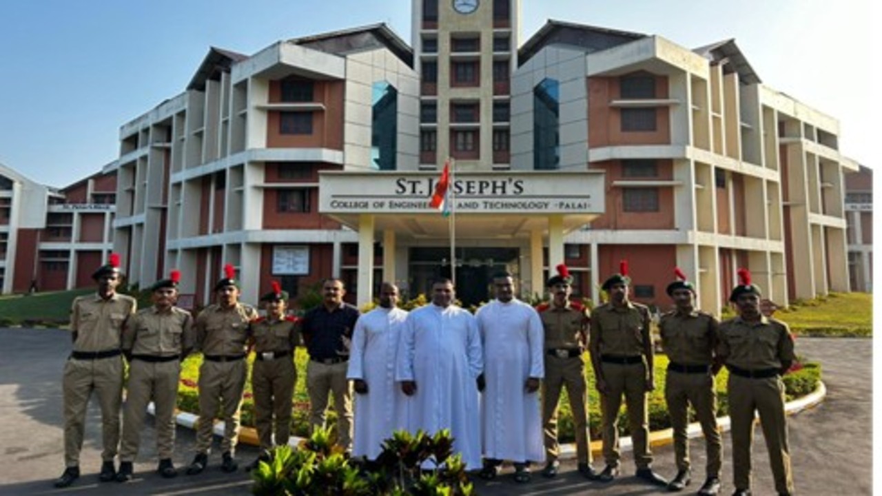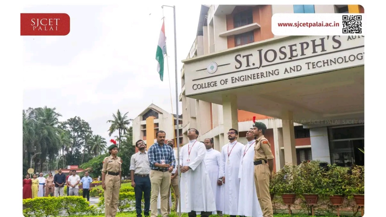 On 15th August 2025, India celebrated its 78th Independence Day with patriotic fervor. At SJCET Pala, the National Flag was hoisted by Rev. Dr. James John Mangalath, Director, who delivered an inspiring message. The program included cultural performances by NCC cadets, featuring a patriotic song with keyboard and guitar and a spirited dance. Dignitaries present were Rev. Dr. Joseph Purayidathil (Vice-Principal), Rev. Fr. John Mattamundayil (Bursar), Rev. Fr. Cherian Moolayil (Fleet Manager), and Dr. Tomson Thomas (CTO). The event concluded with a parade by 73 NCC cadets (40 SD, 33 SW).