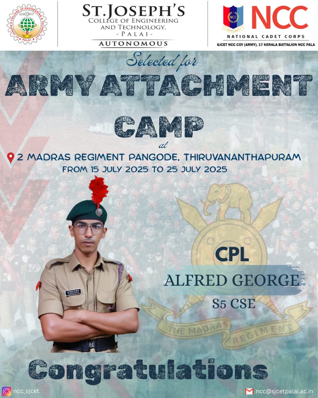 Achievements of NCC Coy (Army), SJCET