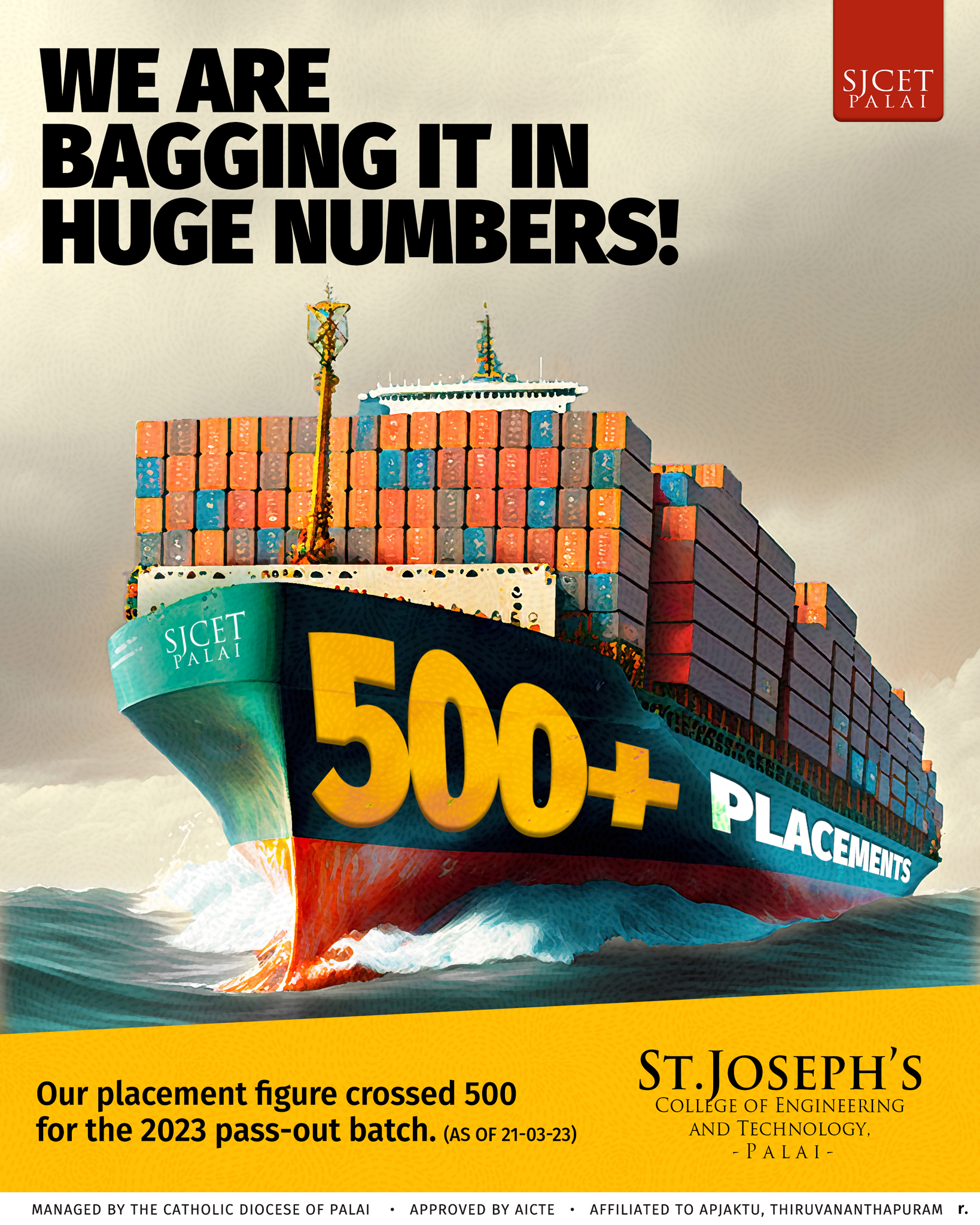 SJCET boasts of outstanding placements ever since its inception. SJCET’s placement statistics stand ample testimony to its objective of placing all eligible & interested candidates according to the students’ career choices. Even during challenging times of economic recession, on account of the corporate trust reposed on SJCET, we were able to harness significantly good careers for our students.